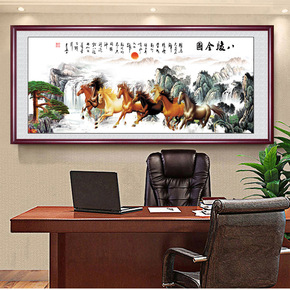 八骏图挂画客厅沙发背景墙装饰画办公室字画马到成功大...