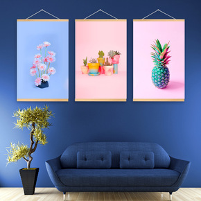 北欧客厅装饰画菠萝三联挂画现代简约轻奢餐厅沙发背景...
