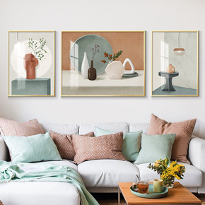 北欧小清新风客厅装饰画唯美静物花瓶插画沙发背景墙壁...