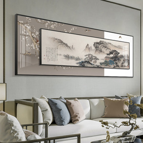 新中式客厅装饰画沙发背景墙壁画办公室山水画背有靠山...