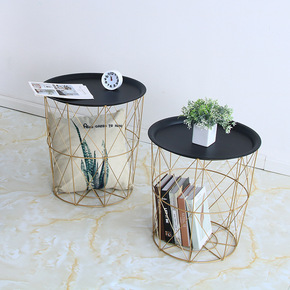 小圆桌沙发边几简约卧室北欧茶几家用ins铁艺桌子创...