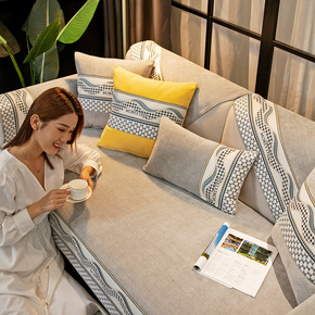 雪尼尔沙发垫子四季通用防滑坐垫加厚北欧简约沙发套罩...