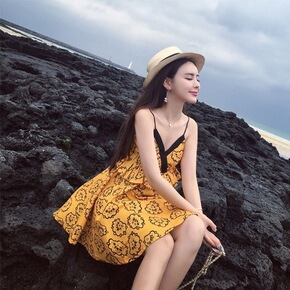 2022夏装闺蜜装连衣裙大码女装海边度假吊带连衣裙...