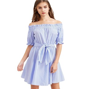 2020夏季新款ebay速卖通海滩服女士半袖蓝色条...