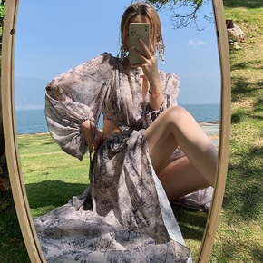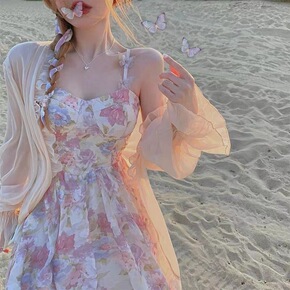 法式碎花吊带连衣裙夏季2022新款外搭沙滩防晒开衫...