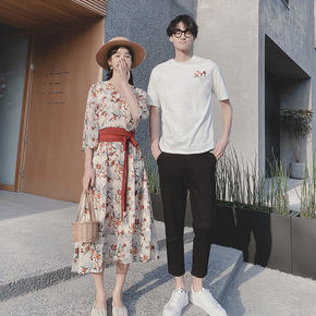情侣装一衣一裙夏装套装2021新款同色系气质你我不...