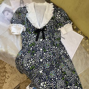 yb2022夏季新款 miu家同款雪纺印花连衣裙法...