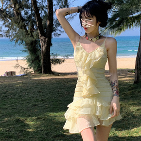 吊带裙连衣裙女 2022 春夏新款收腰显瘦氛围感海...