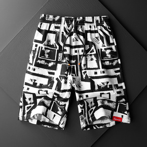 休闲短裤男2021夏季新款男士豹纹短裤宽松运动裤潮...