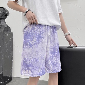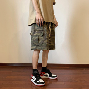 夏季冰丝迷彩大码短裤男潮牌欧美薄款中裤男士沙滩运动...
