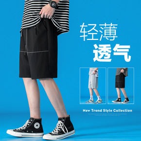 冰丝短裤男士夏季薄款潮牌休闲直筒沙滩中裤运动速干外...