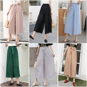 实拍 阔腿裤女夏雪纺薄款裤裙宽松大码高腰坠感度假裤...