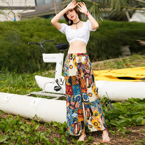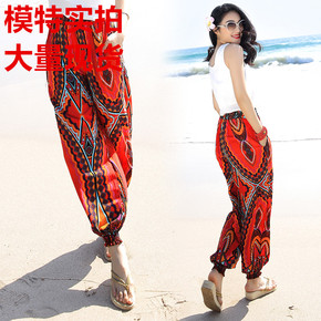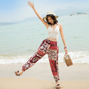 夏新款民族风长裤女波西米亚沙滩裤宽松花裤哈伦裤灯笼...