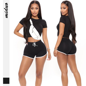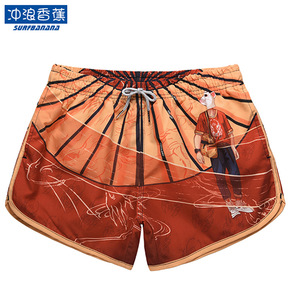 2019新款女士休闲短裤宽松大码热裤数码印花矩形沙...