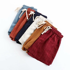 韩版大码女装棉麻短裤胖妹妹夏季新款松紧腰海边风沙滩...