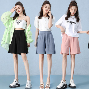 春夏季新款阔腿高腰印花短裤女韩版运动宽松户外热裤子...