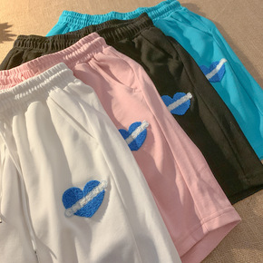 刺绣阔腿短裤女高腰宽松运动休闲瑜伽热裤跑步家居裤睡...