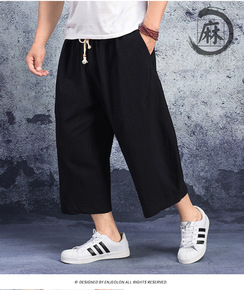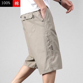 纯棉男士夏季休闲短裤宽松工装五七分裤薄中裤中年爸爸...