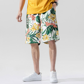 潮牌夏季花短裤男ins宽松大码沙滩裤速干大裤衩抽绳...
