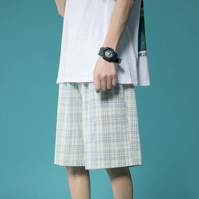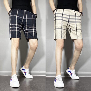 夏季格子短裤四分裤潮男薄款休闲男士五分裤韩版潮流百...