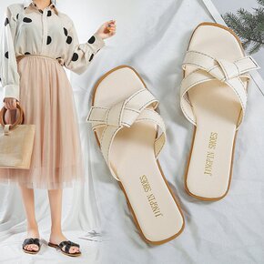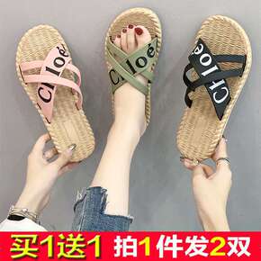厂家直销小香风2021夏季新款网红海边沙滩夹脚平底...