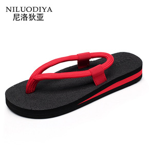 新款人字拖鞋女夏坡跟外穿时尚网红百搭韩版防滑海边沙...