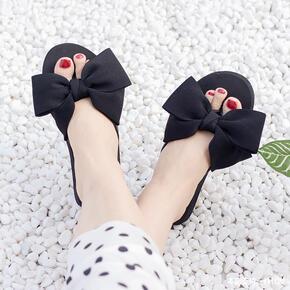 沙滩鞋女夏蝴蝶结拖鞋海边凉拖度假外穿平跟坡跟厚底滑...