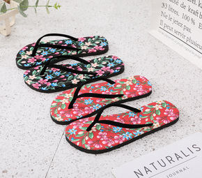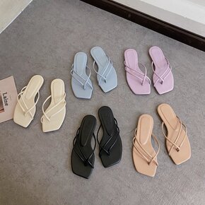 2021年新品花朵配饰女式凉鞋圆头夹脚平底女鞋游玩...