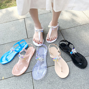 夏季多色彩钻水钻果冻凉鞋时尚休闲户外pvc沙滩鞋女...