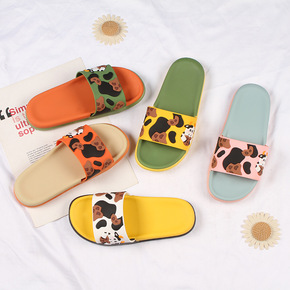 魅力鲨新款夏季时尚休闲拼色奶牛厚底凉拖鞋室内外穿平...