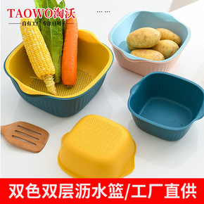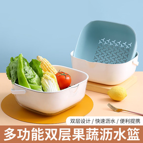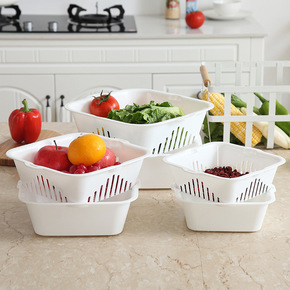 芯式雅白沥水篮方形水果盆塑料厨房蔬菜洗菜筐滴水筛双...