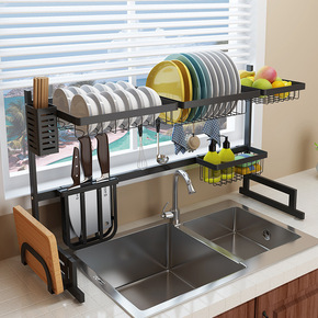 黑色不锈钢厨房置物架水槽水池放碗架沥水碗架碟架厨具...