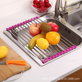 可伸缩不锈钢厨房沥水架水槽沥水篮水果碗碟架洗菜篮沥...