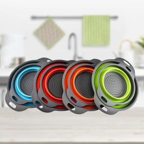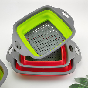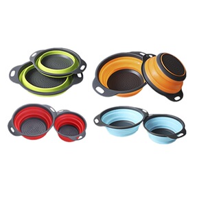 现货供应 圆形沥水篮2件套多功能折叠滤水篮可伸缩硅...