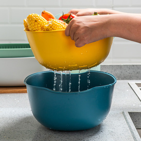 pp滤水篮 圆形滤水篮 两件套可伸缩折叠果篮 洗菜...