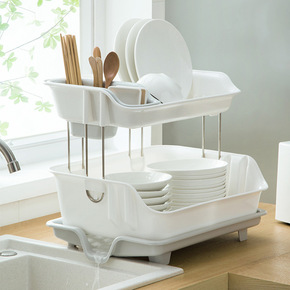 直销厨房大号碗筷收纳盒碗碟餐具沥水碗架塑料碗柜双层...