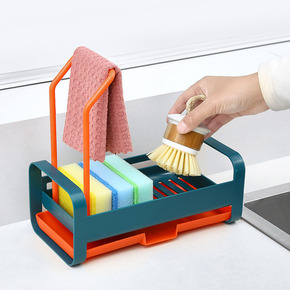 免打孔水槽沥水收纳架洗碗池塑料抹布架厨房置物架可壁...