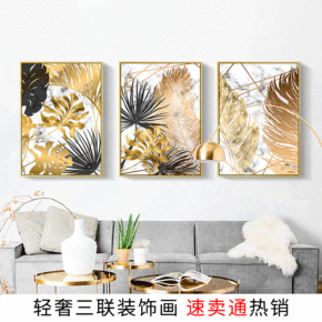 速卖通热销金色植物挂画 羽毛龟背竹ins风北欧卧室...