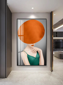 轻奢摩登现代简约性感女郎玄关走廊沙发背景墙面挂画卧...