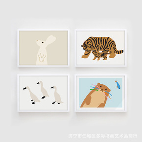 多款 韩国ins风 卡通可爱动物装饰挂画艺术海报画...
