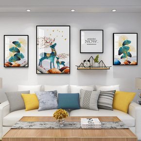 北欧装饰画现代简约客厅正方形挂画餐厅轻奢玄幻麋鹿招...