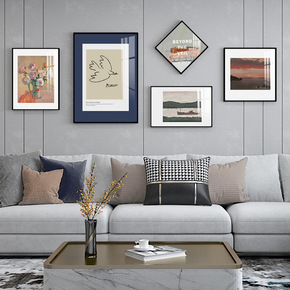 大尺寸铝合金晶瓷画置物架现代客厅装饰相框照片墙组合...