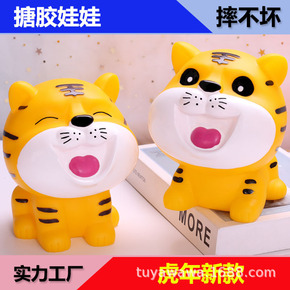 虎年摔不坏非石膏娃娃老虎搪胶存钱罐涂色白胚学生涂鸦...