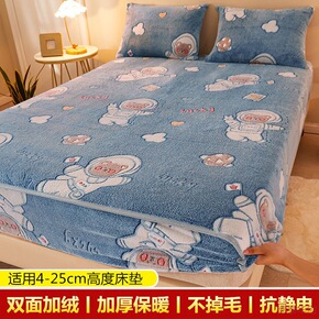 加厚水晶绒床笠单件冬季法兰绒席梦思床垫保护套牛奶绒...