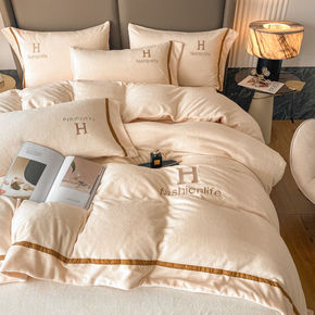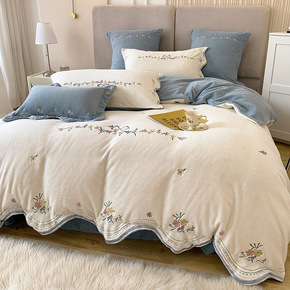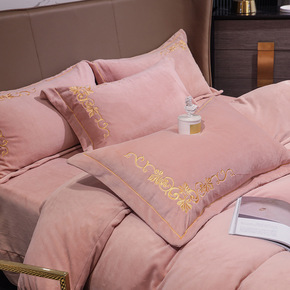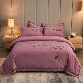 牛奶绒四件套水晶绒冬季加厚保暖珊瑚绒纯色刺绣法莱绒...