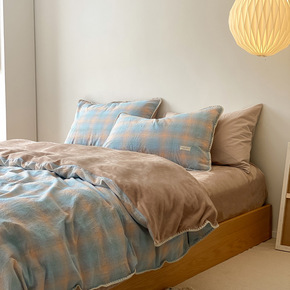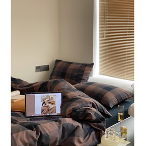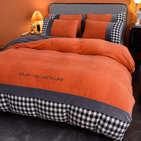冬季牛奶绒四件套加厚羊羔珊瑚绒简约格子床上被套法兰...
