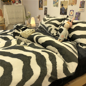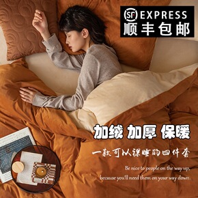 日式牛奶绒保暖四件套法兰绒冬季加绒加厚天鹅绒双面珊...