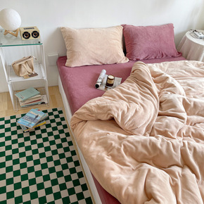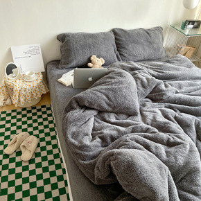 ins韩国保暖奶奶灰泡芙绒床单四件套宝宝绒床笠三件...