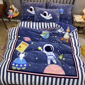 冬季牛奶珊瑚绒四件套床上用品加厚被套卡通可爱男孩三...