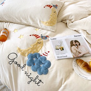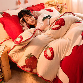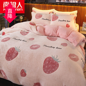 小可爱冬季牛奶绒四件套双面珊瑚绒加厚被套法兰绒床上...
